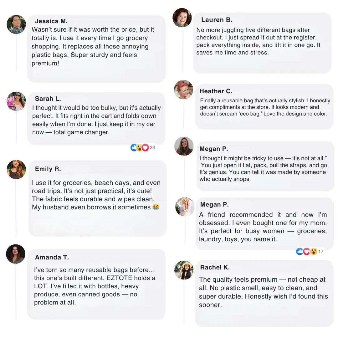Try EZTOTE™ on your next grocery run. If it doesn’t save space, make shopping easier, or replace plastic bags — get a full refund. No questions asked.